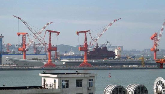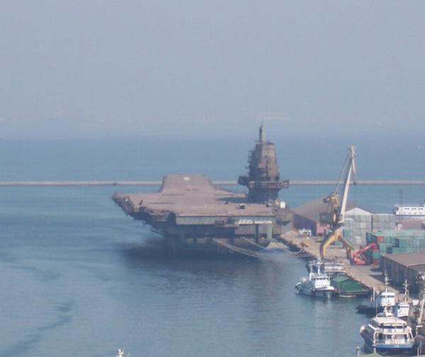 資料圖:在大連進(jìn)行改裝的瓦良格號(hào)航母。