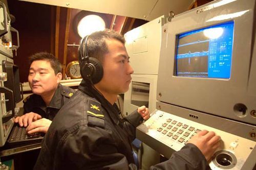 資料圖:中國潛艇內(nèi)部的聲納戰(zhàn)位訓練。