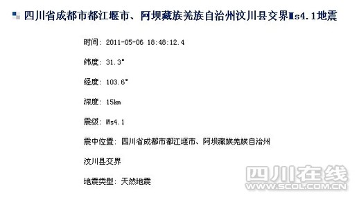 都江堰與汶川交界發(fā)生地震 成都震感明顯(圖)
