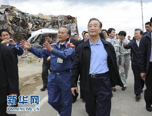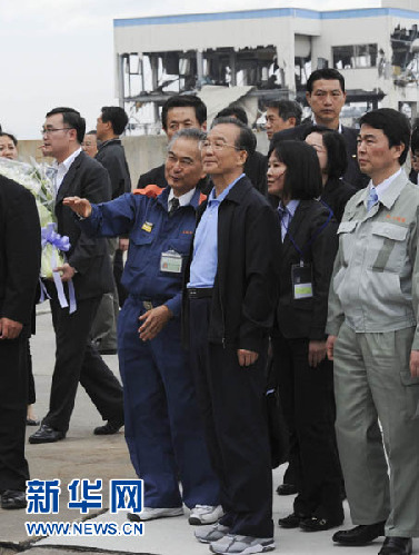 5月21日,中國國務(wù)院總理溫家寶赴日本名取特大地震海嘯災(zāi)區(qū)慰問。新華社記者謝環(huán)馳攝