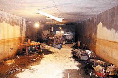 按照姚某的供述,辦案人員摸清了造假窩點(diǎn)的“老巢”——即墨市溫泉鎮(zhèn)黃家山工業(yè)園內(nèi)。從表面上看,這里是一個(gè)面積只有幾十平方米的小車庫(kù),里面的一個(gè)大鐵柜引起了辦案人員的注意。搬開(kāi)鐵柜子,一個(gè)暗門映入眼簾。走到門口往下一看,下面的景象別有洞天。沿著狹窄的樓梯走下去,有一個(gè)足足有120平米的地下室。