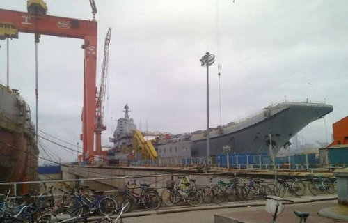 資料圖:網(wǎng)友拍攝的瓦良格改裝進度。