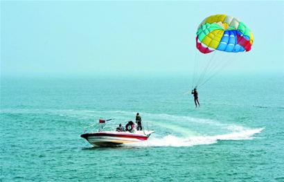 青島海水浴場游泳的市民