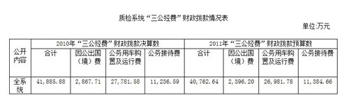 ????2010年質(zhì)檢系統(tǒng)公務(wù)接待費財政撥款支出11,236.59萬元。 2011年財政撥款預(yù)算11,384.66萬元。