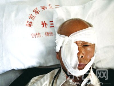 “只聽見‘嘭’的一聲,就感覺‘氣浪’向我沖過來,我下意識地想到壞人搞爆炸了。”81歲的許楨安大爺因右眼傷勢較重、失血過多,被轉(zhuǎn)到了外三科44床留院觀察。許大爺頭上纏著厚厚的繃帶和紗布,右眼被包裹得嚴嚴實實,米色細格子襯衣上的血漬已干涸變黑。