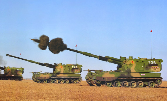 資料圖:解放軍PLZ-05式自行榴彈炮部隊(duì)進(jìn)行遠(yuǎn)程實(shí)彈打擊演練。