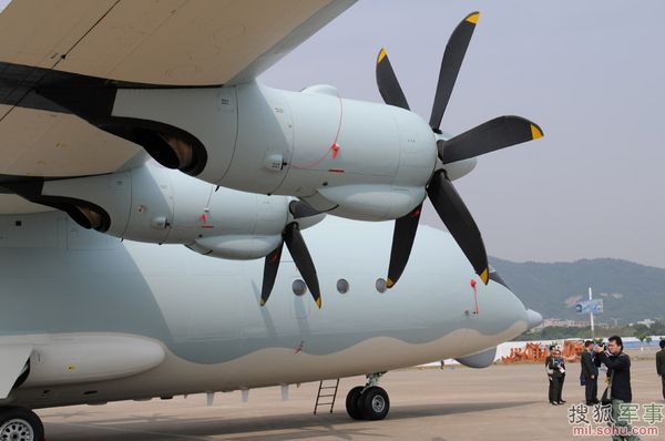 資料圖:空警-200預(yù)警機(jī)機(jī)翼下方發(fā)動機(jī)特寫。