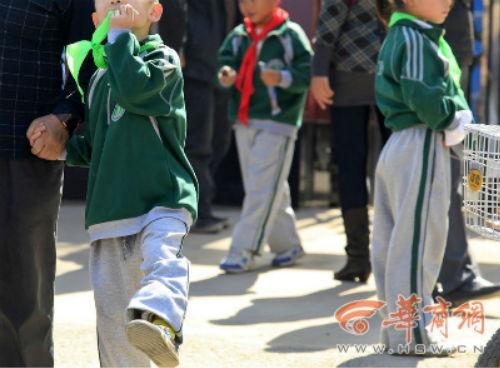 昨日中午12時許,未央?yún)^(qū)第一實驗小學(xué)放學(xué)后,一些孩子胸前的綠領(lǐng)巾在人群中顯得格外扎眼本報記者 張杰 攝
