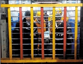 一名獲救礦工身體狀況尚好,被救援人員攙扶出井。