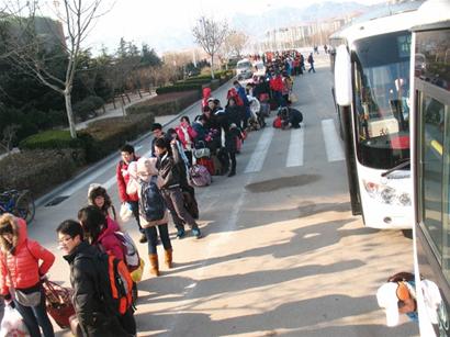 今天全國(guó)鐵路春運(yùn)正式啟動(dòng),隨著島城各大高校學(xué)生陸續(xù)放假,紛紛踏上回家的旅程,昨天青島火車(chē)站出現(xiàn)春運(yùn)首個(gè)學(xué)生流高峰。由于隧道1路線途經(jīng)山科大、濱海學(xué)院、理工大學(xué)等4所高校,學(xué)生放假返鄉(xiāng)集中在7日到10日,預(yù)計(jì)節(jié)前返鄉(xiāng)人數(shù)在6-8萬(wàn)人次。公交海底隧道路隊(duì)從昨天起開(kāi)通 “平安返家學(xué)生專車(chē)”,隧道公交“專車(chē)”將學(xué)生一站送到火車(chē)站。據(jù)悉,昨天一天隧道1路運(yùn)送學(xué)生旅客約1.7萬(wàn)人次。 山科大門(mén)前排隊(duì)200米 昨日清晨5時(shí)40分,公交隧道1路首班車(chē)正點(diǎn)到達(dá)開(kāi)發(fā)區(qū)山東科技大學(xué)門(mén)前,準(zhǔn)備趕早班火車(chē)的大學(xué)生們?cè)缫烟嶂欣畹群蛟谲?chē)站,在路隊(duì)工作人員的指揮下,學(xué)生們有序地排隊(duì)上車(chē)。 上午9時(shí),記者在隧道1路始發(fā)站前看到,等待乘車(chē)的學(xué)生排起了長(zhǎng)長(zhǎng)的隊(duì)伍,一眼望不到頭,記者粗略估算了一下,隊(duì)伍足有200米長(zhǎng)。隧道1路流水發(fā)車(chē),一輛車(chē)滿了后立即發(fā)走,隨后另一輛跟上,長(zhǎng)龍似的隊(duì)伍在快速移動(dòng)著,不過(guò)由于乘車(chē)的學(xué)生不斷加入,長(zhǎng)隊(duì)看上去似乎沒(méi)有縮短多少,但是秩序井然有序?!拔沂窍挛?點(diǎn)的火車(chē),為了不耽誤乘車(chē),還是早出發(fā)保險(xiǎn)啊。”山科大大二學(xué)生小劉告訴記者,昨天各個(gè)學(xué)院都放假了,大家都迫不及待地想回家,他考慮到坐車(chē)的人肯定很多,所以就提前離校,寧愿早到火車(chē)站候車(chē)也別誤了火車(chē)。 加開(kāi)專車(chē)送學(xué)生趕火車(chē) 記者在現(xiàn)場(chǎng)注意到,隧道2路車(chē)趕來(lái)支援,幫助隧道1路運(yùn)送學(xué)生。“隧道2路是我們?yōu)榱朔掂l(xiāng)的學(xué)生特別開(kāi)通的‘平安返家學(xué)生專車(chē)’,從山科大直接送到火車(chē)站?!惫缓5姿淼缆逢?duì)書(shū)記董雪華介紹說(shuō),隧道1路線途經(jīng)山科大、濱海學(xué)院、理工大學(xué)等4所高校,他們提前了解到7日到10日是這幾所高校的學(xué)生放假返鄉(xiāng)的集中時(shí)段,之前摸底了解到這4所高校返鄉(xiāng)人數(shù)達(dá)6萬(wàn)到8萬(wàn)人次,所以提前做出了安排和部署。 記者了解到,隧道1路原有全程車(chē)班次加密,增加早班車(chē)班次安排,執(zhí)行“雙車(chē)計(jì)劃”,早上1至5班執(zhí)行兩車(chē)同發(fā),保證早上不滯留返鄉(xiāng)學(xué)生,同時(shí)滿足非學(xué)生乘客的正常乘車(chē)。同時(shí)增加了區(qū)間車(chē),從山科大始發(fā)站點(diǎn)到火車(chē)站,沿途站點(diǎn)全部???,保證沿途高校的大學(xué)生乘車(chē)需求。另外隧道路隊(duì)還特別開(kāi)通了“平安返家學(xué)生專車(chē)”,從隧道2路調(diào)集車(chē)輛和人員來(lái)支援,從山科大始發(fā)直達(dá)火車(chē)站,中間不停靠。 為了讓學(xué)生盡快乘車(chē),隧道2路線劉艷、蘭柏、李啟榮、曲振奎等16名駕駛員和后勤人員主動(dòng)擔(dān)當(dāng)志愿者,跑完夜班車(chē)又一早趕來(lái)科技大學(xué)幫忙,充當(dāng)起了“搬運(yùn)工”,幫著學(xué)生拿行李。 一天運(yùn)送學(xué)生1.7萬(wàn)人次 記者隨后登上一輛學(xué)生專車(chē),由于學(xué)生攜帶行李比較多,整個(gè)車(chē)廂里滿滿當(dāng)當(dāng)?shù)?,專?chē)中間不靠站,平時(shí)全程要65分鐘,而專車(chē)到達(dá)火車(chē)站只用了不到40分鐘?!皩W(xué)生專車(chē)真是方便了我們學(xué)生,往年我們光坐車(chē)到輪渡就得40分鐘。”山科大大四學(xué)生田銘下了車(chē)后開(kāi)心地說(shuō),他要乘坐下午3點(diǎn)的火車(chē)回河南老家,本以為路上得花費(fèi)不少時(shí)間,沒(méi)想到12點(diǎn)就到火車(chē)站了。 據(jù)統(tǒng)計(jì),昨天隧道1路加上來(lái)支援的隧道2路學(xué)生專車(chē),一共發(fā)送了239個(gè)班次,運(yùn)送乘客約2.1萬(wàn)人次,而學(xué)生就占了8成多,約為1.7萬(wàn)人次。據(jù)悉,7日到10日,隧道路隊(duì)將持續(xù)開(kāi)通學(xué)生專車(chē),保證幾所高校的學(xué)生順利趕上火車(chē)。 昨迎春運(yùn)學(xué)生流首高峰 昨日,青島火車(chē)站迎來(lái)了節(jié)前學(xué)生流的首個(gè)高峰,記者在青島火車(chē)站采訪時(shí)了解到,隨著島城各大高校陸續(xù)放假,學(xué)生返鄉(xiāng)流開(kāi)始劇增,據(jù)悉,1月7日-1月15日將迎來(lái)學(xué)生流和部分農(nóng)民工流高峰,整個(gè)春運(yùn)期間,青島站預(yù)計(jì)發(fā)送學(xué)生客流18萬(wàn)人次,而節(jié)前就有10萬(wàn)人次,節(jié)后8萬(wàn)人次。 春運(yùn)故事 大學(xué)生車(chē)票過(guò)期列車(chē)長(zhǎng)墊補(bǔ)票錢(qián) 好不容易買(mǎi)到回家的火車(chē)票,臨上車(chē)了卻發(fā)現(xiàn)車(chē)票竟然過(guò)期了,回不了家可怎么辦?這是來(lái)自濰坊的大四學(xué)生劉冰近日遇到的難題,在福建閩江學(xué)院服裝設(shè)計(jì)系上學(xué)的他,和3個(gè)同學(xué)1月4日準(zhǔn)備搭乘K68次福州開(kāi)往青島的列車(chē)回家,費(fèi)了好大的勁買(mǎi)到票,可是當(dāng)他們?cè)?號(hào)車(chē)廂驗(yàn)票上車(chē)時(shí)卻被卡住了,列車(chē)員說(s