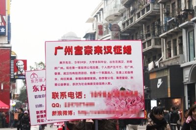 該征婚宣傳牌的出現(xiàn),一下子吸引了大量圍觀者,有人還拿出手機拍照。一位劉姓女士說,現(xiàn)在女孩子找男朋友注重條件很正常,有這樣的超級富商,當(dāng)然不能錯過,她已經(jīng)報名了。