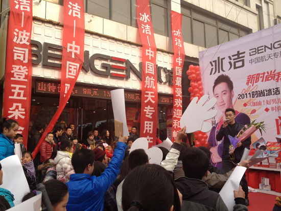 與此同時,在全國各地的商場,《冰潔時尚歌友會》已經(jīng)巡演數(shù)十場,新一代偶像張殿菲、毛方圓、鄭凡等,點燃起“冰潔激情”。