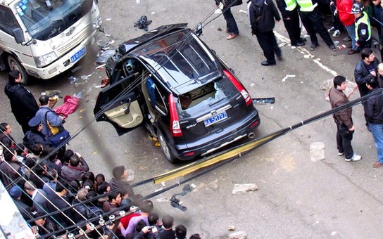 廣西南寧:小型越野車失控 連撞28名路人廣西新聞網(wǎng)訊 1月15日15時(shí)30分許,南寧市高峰路47號(hào)門前人流密集路段發(fā)生一起交通事故,一輛懸掛閩A5M797車牌的本田CRV小汽車突然失控,連續(xù)碰撞多名行人,隨后撞到路邊停靠的一輛貨車后才停下。圖為事發(fā)現(xiàn)場(chǎng)。