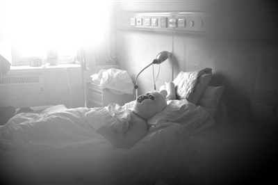 1月18日,承德市醫(yī)學(xué)院附屬醫(yī)院,受害者唐鄉(xiāng)長(zhǎng)在病房里(李飛 攝)