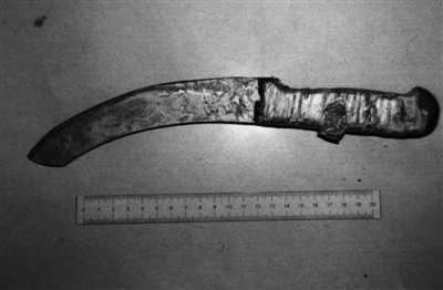 疑犯行兇刀具剔骨刀(翻拍)(劉剛 攝)