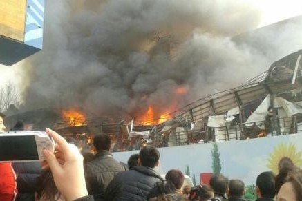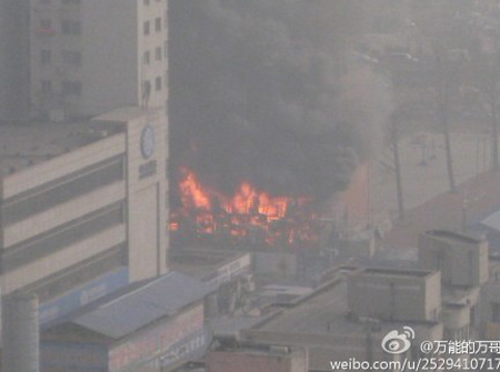 大連地鐵工棚發(fā)生大火爆炸 火苗竄10米高(圖)