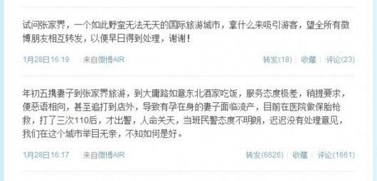 孕婦在張家界旅游被打 打三遍110警察才出警