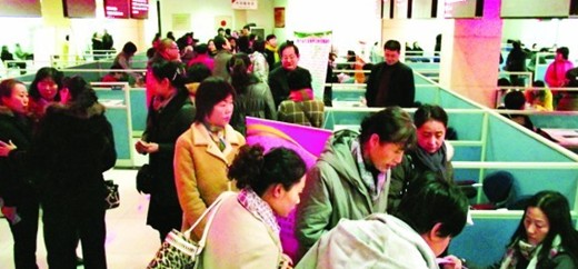 2011年12月份舉行的一場(chǎng)家政服務(wù)對(duì)接會(huì)上,不少月嫂前來(lái)找客戶(hù)。(資料圖片)