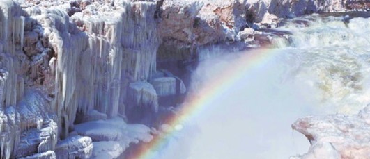 2月3日,山西吉縣黃河壺口冰瀑奇觀。受近日較強(qiáng)冷空氣影響,壺口當(dāng)?shù)貧鉁剡B續(xù)數(shù)日處于-10℃以下,形成姿態(tài)萬(wàn)千的冰橋冰瀑奇觀。(呂桂明 攝)