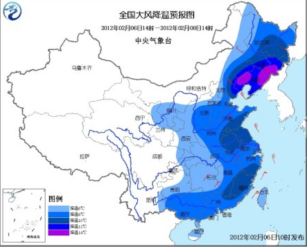 針對(duì)這次冷空氣來襲,中央氣象臺(tái)連續(xù)發(fā)布寒潮藍(lán)色預(yù)警和海上大風(fēng)黃色預(yù)警。據(jù)中央氣象臺(tái)預(yù)報(bào),受較強(qiáng)冷空氣影響,6日08時(shí)至8日08時(shí),西北地區(qū)中東部、內(nèi)蒙古、東北地區(qū)、華北、黃淮、江淮、江漢、江南、華南、西南地區(qū)東南部和東北部等地將出現(xiàn)6~8℃降溫,其中,部分地區(qū)降溫幅度可達(dá)10~12℃,局部地區(qū)可達(dá)14℃;上述大部地區(qū)自北向南將先后出現(xiàn)4~6級(jí)偏北風(fēng)。