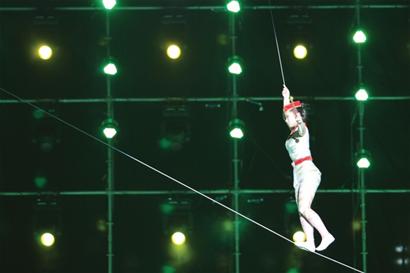 ????剛剛在央視元宵節(jié)晚會(huì)亮相的“走鋼絲”、“福臨門(mén)”等雜技,昨晚又出現(xiàn)在了青島鉆石體育館舉行的第23屆(卓越集團(tuán))青島海云庵糖球會(huì)開(kāi)幕晚會(huì)上。驚嘆聲以及長(zhǎng)時(shí)間的熱烈掌聲,為這臺(tái)由中國(guó)歌劇舞劇院、中國(guó)雜技團(tuán)和沈陽(yáng)軍區(qū)前進(jìn)雜技團(tuán)三大國(guó)內(nèi)頂級(jí)演藝團(tuán)體傾情獻(xiàn)藝的“風(fēng)雅絕技”大型民族歌舞雜技晚會(huì),送上了最衷心的贊美。 ????《大灌籃》扣出驚險(xiǎn) ????在中國(guó)歌劇舞劇院的演員與青島四方少兒活動(dòng)中心的孩子們共同演繹的《紅紅的糖球火火的年》開(kāi)場(chǎng)歌舞后,曾于2008年在央視春晚上技驚四座的沈陽(yáng)軍區(qū)前進(jìn)雜技團(tuán)的經(jīng)典雜技《花式籃球》閃亮登場(chǎng)。 19個(gè)灌籃高手輪番躍起在高空做360度空翻灌籃、直體空翻360度灌籃、男女空中接力灌籃、空翻1080度灌籃等“穿越”式投籃動(dòng)作時(shí),驚險(xiǎn)刺激的場(chǎng)面讓?shí)u城觀眾發(fā)出陣陣驚嘆。 ????走下舞臺(tái),完成了空翻1080度高難動(dòng)作的夏添虎告訴記者,舞臺(tái)上的籃球架及籃筐等都是體育場(chǎng)上標(biāo)準(zhǔn)尺寸的器材,舞臺(tái)上高難度雜技動(dòng)作下的準(zhǔn)確投籃,是團(tuán)員們用近兩年時(shí)間練就的。這個(gè)節(jié)目完全是前進(jìn)雜技團(tuán)的原創(chuàng),一些團(tuán)員還在訓(xùn)練中受過(guò)傷。 ????《中國(guó)結(jié)》比央視還炫 ????在央視元宵晚會(huì)雜技《年夜飯》中表演的“走鋼絲”、“福臨門(mén)”等混搭雜技,昨晚在青島的舞臺(tái)上成了兩個(gè)獨(dú)立的雜技節(jié)目《鋼絲秀》和《中國(guó)結(jié)》。手持旋轉(zhuǎn)棒的少女,在80米長(zhǎng)、28米高的鋼絲上行走,令現(xiàn)場(chǎng)觀眾發(fā)出陣陣驚嘆。而在7個(gè)小魔方結(jié)成的“中國(guó)結(jié)”上,5名美少女在空中翻轉(zhuǎn),做出各種高難度動(dòng)作,組成不同的形狀,令人耳目一新。 ????演出后臺(tái),沈陽(yáng)軍區(qū)前進(jìn)雜技團(tuán)副團(tuán)長(zhǎng)董爭(zhēng)臻向記者透露,為配合青島鉆石館的舞臺(tái)高度,這次在青島的鋼絲高度比央視元宵晚會(huì)的還要高出10多米,長(zhǎng)度也長(zhǎng)出50多米,可以說(shuō)是挑戰(zhàn)了走鋼絲的極限。而央視元宵節(jié)晚會(huì)上的“福臨門(mén)”雜技,只是亮相青島鉆石館的《中國(guó)結(jié)》的一個(gè)“部分”,青島觀眾看到的是《中國(guó)結(jié)》的完整版,可以說(shuō)比央視的節(jié)目還炫。 ????“團(tuán)扇鼓”舞出民俗風(fēng) ????昨晚的節(jié)目,既有步步驚心的雜技盛宴,也有華麗驚艷的歌舞秀。中國(guó)歌劇舞劇院表演的《團(tuán)扇》、《雪花》,帶給觀眾滿(mǎn)眼的華麗。而熱鬧的《鼓舞飛揚(yáng)》、《戲彩》更為青島糖球會(huì)晚會(huì)增添了民俗的風(fēng)味。作為中國(guó)頂級(jí)院團(tuán)的中國(guó)歌劇舞劇院昨天除了帶來(lái)華麗的舞蹈節(jié)目,還帶來(lái)了觀眾熟悉和喜愛(ài)的歌曲,刁碩、孫媛、張全、諶蓉、朱立群分別演唱了《套馬桿》、《龍船調(diào)》、《母親》、《節(jié)日歡歌》、《報(bào)答》等歌曲,舞臺(tái)大屏幕上,展現(xiàn)青島糖球會(huì)上民俗民風(fēng)的鏡頭一個(gè)個(gè)呈現(xiàn),渲染了喜慶的氣氛。 ????《俏花旦》壓軸驚艷 ????曾在2007年央視春晚上亮相并榮獲當(dāng)年 “我最喜愛(ài)的春節(jié)聯(lián)歡晚會(huì)節(jié)目”曲藝雜技類(lèi)唯一的一等獎(jiǎng)的《俏花旦——抖空竹》,是中國(guó)雜技團(tuán)此次來(lái)青獻(xiàn)上的“禮物”,也是最驚艷的壓軸大戲。舞臺(tái)上,9位俏麗可愛(ài)的“俏花旦”,扮相和動(dòng)作整齊劃一,空竹表演中加入了京劇花旦、刀馬旦的動(dòng)作和神態(tài),把中國(guó)的國(guó)粹和傳統(tǒng)的民間雜技展現(xiàn)給了青島觀眾,也切合了與充滿(mǎn)民俗風(fēng)味的青島糖球會(huì)的主旨。 ????據(jù)悉,昨晚舞臺(tái)上表現(xiàn)完美的9位“花旦”,剛剛從土耳其演出歸來(lái),時(shí)差還沒(méi)倒過(guò)來(lái)就趕到青島了。昨晚,她們的表演也讓冒著嚴(yán)寒前往觀看演出的觀眾直呼:“看這樣高水平的演出,值! ” ????相關(guān)新聞 ????雜技演員:5歲進(jìn)團(tuán) 一人多用 ????昨晚最炫的雜技節(jié)目《中國(guó)結(jié)》中的5位女演員,舞臺(tái)上翻轉(zhuǎn)騰挪,看上去像小姑娘一樣。走下舞臺(tái),她們告訴記者,5人中,年齡最大的25歲,最小的21歲。她們基本都是五六歲就進(jìn)團(tuán)成了雜技文藝兵了,這也是沈陽(yáng)軍區(qū)前進(jìn)雜技團(tuán)的一個(gè)不成文的 “規(guī)矩”,即從小培養(yǎng)自己的雜技演員,所有原創(chuàng)的雜技節(jié)目也都是根據(jù)這些演員的雜技技能而編創(chuàng)的。 ????該團(tuán)副團(tuán)長(zhǎng)董爭(zhēng)臻介紹說(shuō),沈陽(yáng)軍區(qū)前進(jìn)雜技團(tuán)的演員都是“一人多用”。前天,演員們從沈陽(yáng)坐了19個(gè)小時(shí)的火車(chē)來(lái)到青島,吃完晚飯,開(kāi)始裝臺(tái),一直裝到凌晨4點(diǎn)。 “不管到哪兒演出,裝臺(tái)的任務(wù)全由演員來(lái)負(fù)責(zé),這也是部隊(duì)上的規(guī)矩。 ”董爭(zhēng)臻說(shuō),別看這些女演員體型玲瓏