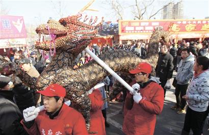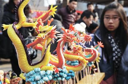 昨日,海云庵糖球會(huì)開(kāi)幕進(jìn)入第3天,記者采訪(fǎng)發(fā)現(xiàn),在糖球會(huì)趕會(huì)的民俗藝人和糖球攤紛紛打出“龍”招牌,糖球龍、糖畫(huà)龍、面塑龍、草編龍……只要沾上“龍”元素,銷(xiāo)量立刻節(jié)節(jié)攀升,成為搶手貨。據(jù)介紹,昨日糖球會(huì)共接納游客約19萬(wàn)人,糖球、小吃等商品成交金額達(dá)750萬(wàn)元。 糖球攤擺出“龍門(mén)陣” “二龍戲珠”“祥龍納?!薄褒埶秃眠\(yùn)”……記者在糖球廣場(chǎng)采訪(fǎng)發(fā)現(xiàn),街心花園周邊的糖球業(yè)戶(hù)迎合龍年的彩頭,紛紛在自家攤位前用山楂搭設(shè)起龍形雕塑,有的攤位還制作出龍形糖球。“這個(gè)二龍戲珠糖球是今年才開(kāi)發(fā)的,給市民討個(gè)好彩頭?!庇浾咴诟呒姨乔驍偪吹剑环N名為“二龍戲珠”的糖球很受趕會(huì)市民歡迎。山楂串成的糖球頂端插了一個(gè)黃色的圣女果,而圣女果兩側(cè)盤(pán)著兩條草編的小龍?!斑@樣的糖球拿在手里都不舍得吃?!币幻忻褓I(mǎi)了一支“二龍戲珠”糖球,表示要拿回家,讓家人看個(gè)新鮮,然后再吃?!疤乔蚝贸赃€得有觀賞性?!备呒姨乔虻母呤肯娓嬖V記者,糖球邊上的兩條草編小龍是他們請(qǐng)草編藝人專(zhuān)門(mén)編的,糖球吃完了,兩條小龍還可以拿下來(lái)擺在家中起裝飾作用。李府糖球和劉家花樣糖球則在門(mén)前擺出用山楂做的生肖龍,山楂、山藥豆、酸棗、圣女果……都成了制作生肖龍的材料。 民俗攤“群龍”舞動(dòng) 糖球廣場(chǎng)一排10多個(gè)民俗攤位上,草編龍、糖畫(huà)龍、面塑龍、泥塑龍等各種樣式的“龍花樣”讓人如同進(jìn)入龍世界?!敖衲晔驱埬辏ツ晗掳肽晡揖烷_(kāi)始著手研究如何用面塑做龍了?!?0歲的杜文森手里捏著一團(tuán)彩色面團(tuán),左捏右捏,用了十幾分鐘,一條活靈活現(xiàn)的“飛龍”就誕生了。杜文森告訴記者,他19歲開(kāi)始學(xué)習(xí)面塑制作,之后的20多年全靠面塑賺錢(qián)養(yǎng)家。因?yàn)榻衲甑霓r(nóng)歷龍年,為在糖球會(huì)上能拿出像模像樣的面塑龍,他在家找出30多年前《哪吒鬧?!返男∪藭?shū),按照里面龍王的樣子塑造出戲珠龍、擺尾龍、探寶龍等9種造型的面塑龍。 糖畫(huà)師傅關(guān)景帝從擺下攤開(kāi)始就忙得連頭也不抬,他最暢銷(xiāo)的糖畫(huà)就是“大龍”。一小勺糖稀在他手中繞來(lái)繞去,不到兩分鐘,桌面上就出現(xiàn)一條金光閃閃的糖龍。“大龍20元一個(gè),其他花樣10元?!彪m然糖龍價(jià)格翻番,但前來(lái)買(mǎi)糖龍的市民絡(luò)繹不絕?!巴媚戤?huà)兔、龍年畫(huà)龍,這是做糖畫(huà)歷來(lái)的規(guī)律?!标P(guān)景帝告訴記者,糖龍花樣是跟師傅學(xué)徒時(shí)必須要學(xué)的,之后隨著自己在全國(guó)四處趕會(huì),眼界不斷開(kāi)闊。 |