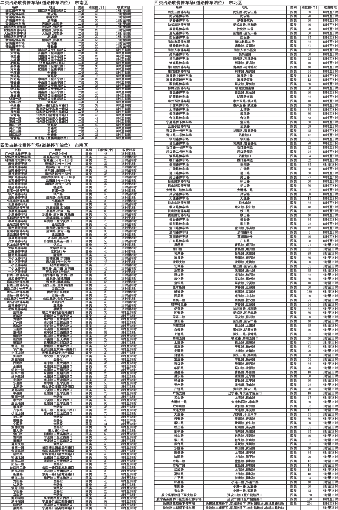 占路收費(fèi)停車場(chǎng)(道路停車泊位)收費(fèi)標(biāo)準(zhǔn)(三)