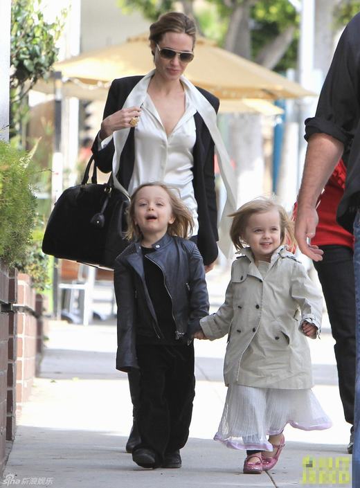 近日,剛剛結束了奧斯卡頒獎禮活動的安吉莉娜-朱莉與皮特的母親一起帶著龍鳳胎子女諾克斯和維維恩在比佛麗山莊附近逛街。茱莉看著兩個漂亮的孩子露出幸福笑容。
