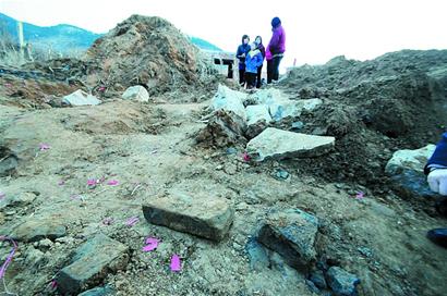前天,即墨市鰲山衛(wèi)鎮(zhèn)滬沱村村民在蓋房子挖地基時,發(fā)現(xiàn)一處神秘墓穴,并意外出土銅鏡、古磚等寶貝。昨天上午,即墨文化局文物專家趕到現(xiàn)場調(diào)查發(fā)現(xiàn),這是一處衣姓家族古墓,年代在明清,出土的銅鏡距今已有600年歷史。 一鏟下去挖出“寶貝” “以前知道這地方有墓,但具體什么方位拿不準(zhǔn),無意間就挖出寶貝了?!弊蛱焐衔纾浾呲s到即墨市鰲山衛(wèi)鎮(zhèn)滬沱村看到,這里離海邊不到一公里遠(yuǎn),在村東側(cè)一處小山腳下,許多村民正圍著幾個大土堆議論紛紛。村民衣光磊告訴記者,當(dāng)天上午10時許,他操作挖掘機正在挖地基,突然覺得好像遇到了什么硬東西,于是他停了下來,在土里發(fā)現(xiàn)了幾塊大磚頭,還有幾件像兵器的東西,在這些東西里,村民還驚喜地發(fā)現(xiàn)了一面圓形的小銅鏡。 難道這里就是老人常說的家族古墓?衣光磊和幾個村民看到這些東西后,第一個念頭就是:他們挖到古墓了。當(dāng)村民接著下挖3米多深后,又發(fā)現(xiàn)了一些巨大的石頭,經(jīng)過村民仔細(xì)觀察,這些石頭呈長方形,厚度在20到30厘米左右,數(shù)塊大石頭被完美地組合在一起,中間沒有一點縫隙。有村民稱,這肯定是家族的古墳,不能再挖了。于是幾名村民趕緊將墓穴回填,并將情況告訴了村干部。 小銅鏡或是明代之物 滬沱村黨支部衣書記告訴記者,根據(jù)史料和譜書記載,滬沱村是明代初年出現(xiàn)在這里的,衣姓第三代時,村里出了一名叫衣滬的書生,后來考取了功名,到了山西任縣令,去世后葬于家族墳地。數(shù)十年前在村東側(cè)還能看到幾座高高的墳塋,后來被平掉。 即墨市文化局兩名專家隨后趕到現(xiàn)場看到,村民發(fā)現(xiàn)的銅鏡直徑在20厘米左右,厚約3厘米,鏡面被村民擦洗后,仍能映出人影,鏡子的背面有花飾,中間有一個小孔。根據(jù)銅鏡的造型等特點分析它可能是明代的器物,距今約600年歷史,應(yīng)該是隨身攜帶之物,小孔用線穿著方便攜帶,銅鏡保存完好,對研究古墓的歷史有很高的價值。 兩名專家判斷,這處墓穴應(yīng)該就是衣姓家族的墓地,至于該處古墓是否是明朝這位縣令的,還需進一步考證。“這是家族的古墓,一定要好好保護起來?!睖逡聲浾f,發(fā)現(xiàn)墓穴后,他們就立即叫停了建房下挖,并將墓地保護起來。即墨市博物館張館長告訴記者,是否發(fā)掘該處古墓還要向上級部門報告才能決定。(記者 康曉歡 攝影報道) |