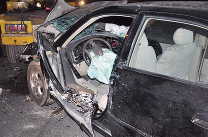 “剛在黑龍江中路上王埠村北的公交車站附近,一輛黑色的現(xiàn)代轎車跟一輛河北牌照的大貨車撞在了一起,現(xiàn)代轎車車頭扭曲變形,車?yán)镞€有3人被困住了?!鼻巴?0時(shí)左右,市民王先生撥打早報(bào)熱線82888000報(bào)料。記者聞?dòng)嵹s到現(xiàn)場(chǎng)時(shí)看到,一輛黑色的轎車停在黑龍江中路北向南的車道中央,車頭前部被撞凹陷,車前蓋掀起,車門(mén)扭曲變形,前擋風(fēng)玻璃和車燈、保險(xiǎn)杠被撞得粉碎,玻璃碎片和車身零件散落一地。車內(nèi)安全氣囊全部打開(kāi),大量黑色的機(jī)油漏出,記者發(fā)現(xiàn)車邊這灘機(jī)油中能看出斑斑血跡。