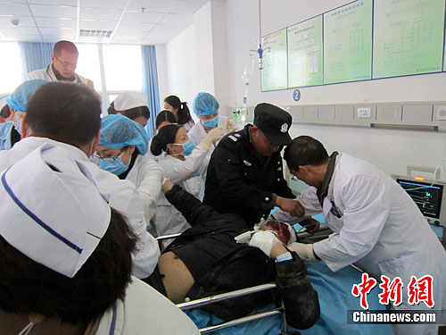 醫(yī)護人員緊急處置受傷人員傷情。