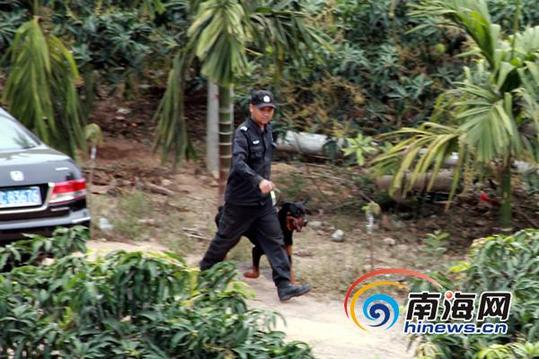 民警攜帶警犬搜尋犯罪嫌疑人(南海網(wǎng)記者鄧松攝)