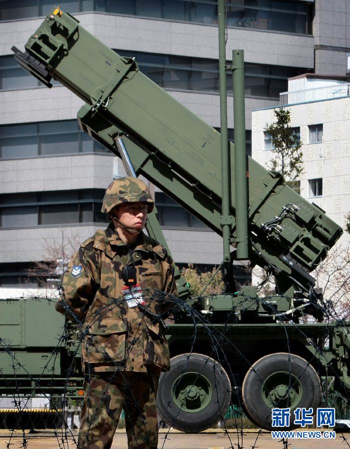 3月30日,針對朝鮮運載火箭可能經(jīng)過日本上空或在日本境內(nèi)墜落的情況,日本防衛(wèi)大臣田中直紀(jì)向自衛(wèi)隊下達了用彈道導(dǎo)彈防御系統(tǒng)進行攔截的命令。這是2009年3月29日在日本東京拍攝的負(fù)責(zé)攔截任務(wù)的“愛國者3”型導(dǎo)彈。據(jù)日本媒體報道,自衛(wèi)隊將在沖繩本島、沖繩縣石垣島和宮古島及首都東京部署“愛國者3”型導(dǎo)彈,在沖繩附近的東海、沖繩近海和日本海部署載有“標(biāo)準(zhǔn)3”型?;鶖r截導(dǎo)彈的宙斯盾戰(zhàn)艦。新華社/美聯(lián) |