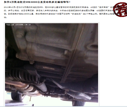鏈接>>>加價2萬凱迪拉克SRX3000公里發(fā)動機多處漏油特寫!