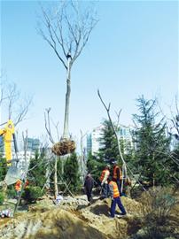 記者在燕兒島路小公園看到,一片繁忙的景象,工人正在運(yùn)輸、移栽、培土、澆水,很快,一棵棵高五六米的大喬木,移栽到樹穴內(nèi)。因?yàn)闃淠咎?,施工人員種樹需要借助大吊車幫忙。施工人員表示,此處公園距離大海比較近,因?yàn)檫x擇的樹種以黑松為主,廣場(chǎng)還種植了櫸樹、樸樹等,此外還種植紅葉石楠等灌木?!澳壳埃N植的高大喬木已經(jīng)千余棵?!笔┕と藛T表示。
