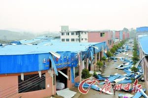 清遠(yuǎn)連州市,狂風(fēng)肆虐后工業(yè)園里一片狼藉,連片廠房屋頂被掀翻。(記者 曹菁 通訊員 陳儉靈 攝)
