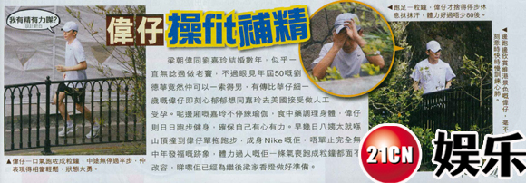 梁朝偉和劉嘉玲結(jié)婚數(shù)年,似乎一直沒(méi)有考慮過(guò)做爸爸,不過(guò)眼見(jiàn)年屆50的劉德華竟然可以一索得男,有傳比劉德華小一歲的梁朝偉立刻躍躍欲試想和劉嘉玲去美國(guó)接受做人工受孕。這邊廂劉嘉玲不停練瑜伽,吃中藥調(diào)理身體,梁朝偉則日日跑步,確保自己有心有力。前幾日記者就在山頂遇到梁朝偉一個(gè)人跑步,全身NIKE的他,不單完全沒(méi)有中年發(fā)福的跡象,體力過(guò)人的他一口氣跑了一個(gè)小時(shí)都面不改色,看來(lái)他已經(jīng)為梁家香火做好準(zhǔn)備。