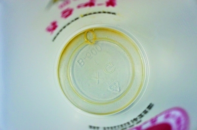 在珠江路附近,記者在某品牌店買了一杯3元左右的甜豆?jié){。將豆?jié){倒進(jìn)同樣的透明藍(lán)色水瓶,顏色明顯比前兩者更黃,豆?jié){表面的泡沫和家磨豆?jié){相當(dāng)。和豆?jié){香精調(diào)的“香豆?jié){”相比奶香味更淡,沒有豆腥味??诟兴?,比家磨豆?jié){更粘稠,但喝下去的黃豆味偏淡,豆香不如家磨豆?jié){。將品牌豆?jié){放置一夜,在杯底凝結(jié)成一層黃色半透明凝膠狀物質(zhì)。