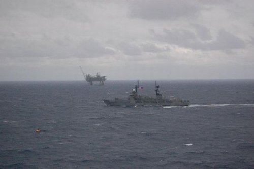 菲律賓海軍派新購入的美制二手軍艦進(jìn)入我南海九段線內(nèi)菲方石油鉆井平臺