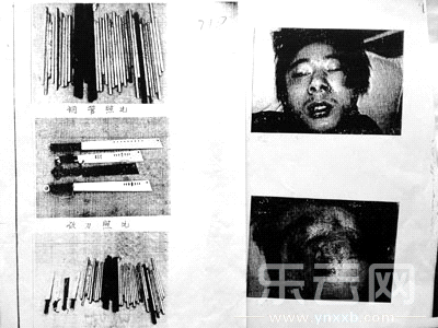 警方展示的學生毆斗兇器及傷者照片(翻拍)。