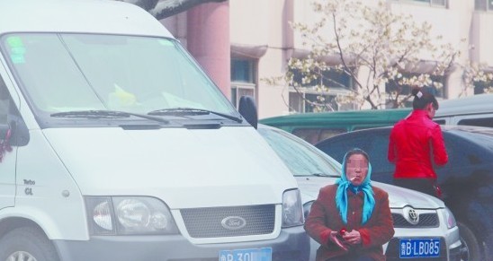4月15日,膠南市人民醫(yī)院內(nèi)一輛牌照為魯B30×××的山寨救護(hù)車被"靜坐"的老太擋住去路。