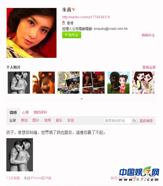 朱茵微博截圖