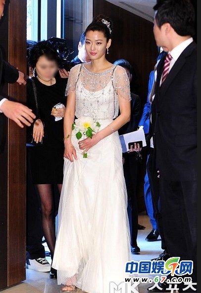 全智賢昨日在記者會及婚禮上分別以兩款不同品牌的婚紗亮相,她先穿上英國著名品牌Jenny Packham的婚紗出席記者會,婚紗以水晶珠片及白色蕾絲裝飾,令新娘子更顯雍容華貴,其后她再換上美國著名婚紗品牌Reem Acra、約54萬港元的婚紗行禮。