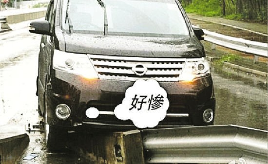 蔡少芬座駕撞向護(hù)欄,幸好沒有受傷。