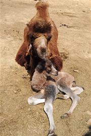 ????“母駱駝像其他動(dòng)物一樣,都護(hù)崽子,但剛開始它不會(huì)喂養(yǎng)小駱駝?!编嚰襾砀嬖V記者,他將小駱駝圈住,不讓它亂跑,然后按著它的頭將嘴頂?shù)侥格橊劦娜榉肯?,反?fù)幾次,小駱駝就會(huì)吸吮了??粗眢w虛弱的小駱駝時(shí)常躺在地上,不主動(dòng)吃奶,駱駝媽媽就過來用頭頂頂小駱駝,告訴它該吃奶了?!澳格橊勔惶煲驳梦箓€(gè)兩三趟,每次4斤精料外加2斤玉米?!编嚰襾碚f,等小駱駝長到3個(gè)月時(shí),就可以吃草了。(記者劉海龍 通訊員 饒松 攝影報(bào)道)