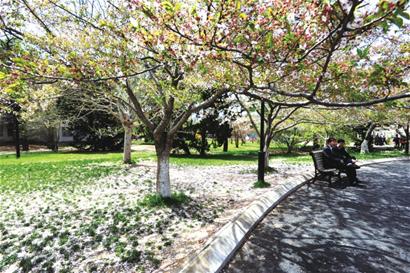 山公園雙櫻五月綻放 大風(fēng)過后,青島中山公園的單櫻凋謝,想看櫻花的市民得再等幾天,下月初公園內(nèi)的雙櫻將開放。記者昨天在中山公園內(nèi)看到,工作人員已經(jīng)開始擺花,五一前將擺放20萬盆鮮花迎客。 昨天上午,記者在中山公園內(nèi)看到,盛開的單櫻經(jīng)不起大風(fēng)的侵襲,花瓣紛紛墜落,展示著最后一絲美麗。告別了單櫻的公園并不單調(diào),記者看到,園區(qū)內(nèi)還有郁金香、紅葉李等在怒放著。再過一周左右,園區(qū)內(nèi)的牡丹 園區(qū)內(nèi),工人在緊張忙碌著擺放鮮花。工人告訴記者,五一前他們將擺放20萬盆鮮花,其中有萬壽菊、鼠尾草、四季海棠等十多個品種。(記者 王磊江) |