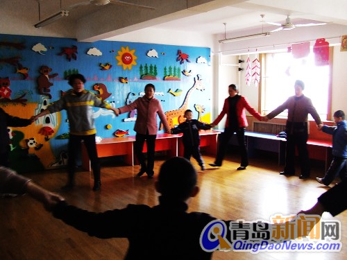 ??? “吹泡泡,吹泡泡,一吹吹了個(gè)大泡泡”,老師和孩子們一遍說著童謠,一邊手拉手圍成一個(gè)大圈圈,“哈哈哈”,孩子們看到自己圍起的大圈圈開心的笑了,“吹泡泡,吹泡泡,一吹吹了個(gè)小泡泡”,老師和孩子們又拉著手聚在一起,孩子們玩的十分開心。據(jù)老師們說,因?yàn)檫@些孩子們大多數(shù)有智力上的殘疾,所以只能玩一些最最簡單的游戲,但這并不妨礙他們依然玩的開心。
