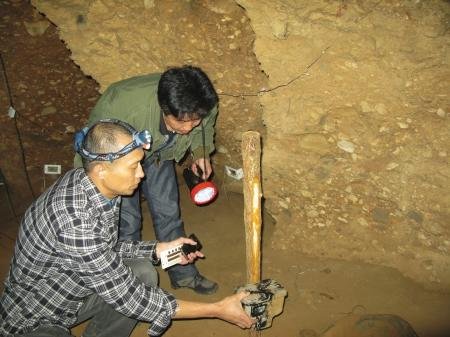 工作人員布設(shè)紅外感應(yīng)相機觀察巖鼠 當(dāng)?shù)乩相l(xiāng)說,曾有不少人在洞中遇見過比貓還大的老鼠。這些老鼠見啥吃啥,在洞里的絕壁懸崖上奔跑自如,還可潛水,大家根據(jù)習(xí)性叫它“巖(當(dāng)?shù)匾糇xai)鼠”。 29日上午,一只巖鼠被關(guān)進籠子,經(jīng)過測量,這只巖鼠長58厘米,尾巴長30厘米,重700克 四川省林科院研究員劉少英說,這是白腹巨鼠,為鼠科中較大的一種鼠類 相傳有一種比貓大的老鼠,生活在溶洞里,卻能在無一絲光線的洞壁間行走如飛;它們警惕性很高,不輕易靠近新事物,還從不挑食…… 日前,記者來到雅安市蘆山縣龍門洞,一探這種巨鼠的秘密。在4月29日上午10點,記者再進洞時,驚喜出現(xiàn)了:一只巖鼠已被關(guān)進了籠子,正焦躁地在籠子里掙扎。 2003年1月 初聞神秘巨鼠 頭天洞中擺蠟燭 次日被動物吃掉 龍門洞地處雅安市蘆山縣境內(nèi),是中國乃至亞洲發(fā)現(xiàn)的白堊紀礫巖巖石層中最大的洞穴群,處在神秘的北緯30度線上。龍門洞面積80余平方公里,洞穴長百余公里,堪稱“亞洲第一,世界罕見”,目前已探明的僅20多平方公里。 2003年1月,記者采訪一對在龍門洞舉行溶洞婚禮的新人時,初聞神秘巨鼠。當(dāng)時為迎接新人,人們提前一天在洞內(nèi)擺放了999支紅蠟燭,但第二天進洞時發(fā)現(xiàn),大部分蠟燭都被一種不明的動物吃掉。從剩余的蠟燭上,人們發(fā)現(xiàn)了咬痕,并在沙地上看到了無數(shù)似老鼠腳印的形狀,幾乎與貓的腳印一般大。 從當(dāng)?shù)乩相l(xiāng)口中得知,曾有不少人在洞中遇見過比貓還大的老鼠。這些老鼠見啥吃啥,在洞里的絕壁懸崖上奔跑自如,還可潛水,大家根據(jù)習(xí)性叫它“巖(當(dāng)?shù)匾糇xai)鼠”。 今年4月26日 記者夜探溶洞 6只巖鼠首尾相連腳印有40毫米長 2012年4月26日,記者帶著從林業(yè)部門借來的兩臺紅外感應(yīng)照相機,再次來到龍門洞。當(dāng)晚,在幾名溶洞工作人員的帶領(lǐng)下,進入溶洞布相機陷阱欲探究竟。 伍德寬是龍門洞的電工,由于工作原因,他算是見到巨鼠次數(shù)最多的人。晚上8點過,伍德寬打開照明設(shè)備,一行人準備進洞。剛進洞,幾只蝙蝠就從記者耳邊飛過。再往前有一個水凼,電筒一照,里面有很多白色小蝦,記者出發(fā)前請教過洞穴專家,這種蝦叫透明無眼龍蝦。由于生活在幾乎無光的環(huán)境里,它們的眼睛已退化。 伍德寬說,這些蝦也是巖鼠的食物,巖鼠什么都吃,他們曾嘗試在洞里的水池養(yǎng)了好多觀賞鯉魚,沒幾天就一條都不見了。后來維修電線時,在石縫中看了被巖鼠吃剩的魚骨。 往洞中深處走,地下出現(xiàn)一排排的巖鼠腳印,用標(biāo)記尺一量,腳印足有40毫米長。此時,頭頂上方突然有動靜,電筒照去,只見6只巖鼠首尾相連在一條巖縫邊移動,它們是一個大的在前,一個咬住一個的尾巴接隊奔跑。不等相機對準,已消失在縫隙中。 伍德寬說,有一次他修電纜,累了坐下休息,不遠處有個垃圾桶,只見一只巖鼠跑來,垃圾桶下小上大,它爬不上去,嘴巴也僅能夠著桶沿。這只巖鼠折騰了一會兒就跑了,不到2分鐘,又來了6只巖鼠,大的銜住桶沿也是首尾相連,像拔河一搬,瞬間將垃圾桶拉倒。 隨后,大家在巖鼠經(jīng)常出沒的地方,布下兩個相機陷阱才離開,準備第二天來取成果。 今年4月29日 巖鼠關(guān)進籠子 巖鼠警惕性很高 不輕易碰新事物 第二天一早,記者一行來到洞里,找到相機陷阱。打開一看,什么都沒拍下。再打開一臺設(shè)備,還是空白。難到它們對米飯和排骨不感興趣? 工作人員李玉森說,巖鼠非常聰明,人的腳印一多,它的警惕性就很高,設(shè)備的味道也能引起它的警惕,它要在附近轉(zhuǎn)幾天才靠近。相比平時見到的老鼠,巖鼠稱得上“精明鼠大哥”。 27日上午,記者與工作人員特制了一個大號的關(guān)鼠籠,中午再進入溶洞里布下一個陷阱。28日進洞查看,巖鼠沒上當(dāng),籠子邊上只多了一圈腳印。29日上午10點,再進洞時,驚喜出現(xiàn)了:一只巖鼠已被關(guān)進了籠子,正焦躁地在籠子里掙扎。 把巖鼠帶出洞后,經(jīng)過測量,這只巖鼠長58厘米,尾巴長30厘米,重700克。雖與傳說中的與貓一樣大有差距,但長度的確比一般的鼠長許多。記者為巖鼠進行了基因采樣后又將鼠籠提進洞,籠門一開,巖鼠飛快躥出,消失在黑暗中。 專家 夜視能力強 為攝食進溶洞 四川省林科院劉少英研究員聽過對巖鼠的描述后,很肯定地說,這個動物就是白腹巨鼠,為鼠科中較大的一種鼠類,體較青毛鼠粗壯,尾亦長而粗,末端多為灰白色。背毛棕褐色或略顯淡棕色,自頭頂至尾基部毛色基本一致。一般重約600克,腳長40毫米左右,胡須較粗長,長須可達120毫米,基部為黑褐色,至末端顏色逐漸變淡,在嘴巴周圍有一部分較短的胡須,顏色較長須為淡,多為灰白色。 這種嚙齒目動物生活在我國的云、貴、川地區(qū),此外,我國南方一些省份也有發(fā)現(xiàn)。它們生活在林間,一般以植物為食。關(guān)于龍門洞的白腹巨鼠,劉少英說,那是它們?yōu)榱藬z取食物而進的溶洞,它們與貓等動物一樣,夜視能力很強。 |