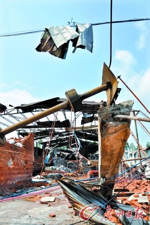 ![]() ??? 昨日凌晨零時(shí)30分許,江門(mén)市新會(huì)區(qū)奇榜村鳳山工業(yè)區(qū)突然出現(xiàn)龍卷風(fēng)。至昨天記者發(fā)稿時(shí),江門(mén)市政府向記者通報(bào),此次龍卷風(fēng)災(zāi)害共造成22間總計(jì)超過(guò)2.3萬(wàn)平方米的廠房被夷為平地。災(zāi)害發(fā)生后,救援人員共解救疏散群眾105人,未發(fā)現(xiàn)人員死亡,4名傷者被救,全部送往醫(yī)院治療,均無(wú)生命危險(xiǎn)。 ????現(xiàn)場(chǎng):22間廠房瞬間倒塌 ????昨天,奇榜村鳳山工業(yè)區(qū)治保委員會(huì)的治保員老陳告訴記者,零時(shí)15分左右,值班室外突然傳來(lái)了數(shù)聲巨響,他跑出值班室一看:在奇榜工業(yè)區(qū)上方的天空上,從廠房頂飛出來(lái)的鐵皮不斷地被卷入天空,又被狠狠地甩向周邊。據(jù)了解,該股強(qiáng)龍卷風(fēng)共造成22間廠房倒塌,受災(zāi)面積2.3萬(wàn)平方米。 ????2時(shí)許,記者趕到現(xiàn)場(chǎng)看到,以鋼架為主體的和墻體單薄的臨時(shí)建筑幾乎全部發(fā)生了坍塌,房頂?shù)陌阻F皮絕大部分被龍卷風(fēng)卷走。5時(shí)50分,雷暴雨逐漸小了,天色開(kāi)始吐白,救援人員完成了最后一次地毯式搜救后,陸續(xù)撤出。鐵皮散落在工業(yè)區(qū)方圓數(shù)百米范圍內(nèi),有的甚至飛到了高速公路上。被龍卷風(fēng)卷起的白鐵皮最遠(yuǎn)的越過(guò)了高速公路,砸在了數(shù)百米外的小山丘上,墜落的白鐵皮將數(shù)十棵直徑接近20厘米的樹(shù)木攔腰砸斷。十多張長(zhǎng)數(shù)米的白鐵皮掛在了二三十米高的高壓電纜上。 ????影響:江門(mén)市區(qū)多處水浸 ????記者了解到,昨晨引起鳳山工業(yè)區(qū)龍卷風(fēng)的強(qiáng)雷暴雨還造成了江門(mén)市區(qū)多處水浸,不少車(chē)輛在行駛時(shí)突然熄火并被雨水浸入車(chē)內(nèi)。白石大道等主干道的數(shù)十棵直徑超過(guò)40厘米的大樹(shù)被連根拔起,部分停在路邊的車(chē)輛被砸壞。 ????記者還了解到,龍卷風(fēng)不僅襲擊了鳳山工業(yè)區(qū),連工業(yè)區(qū)北部的培英中學(xué)、中醫(yī)藥學(xué)院和江門(mén)體校也未能幸免。學(xué)校多座教學(xué)樓和宿舍樓的門(mén)窗均被破壞,校內(nèi)和學(xué)校周邊的道路兩旁的樹(shù)木多被折斷,甚至被連根拔起。 ????特寫(xiě)一:為護(hù)女兒老爸腦袋被砸 ????傷者阿泰向記者講述了驚險(xiǎn)一幕。阿泰被巨響吵醒,起來(lái)一看,房頂?shù)陌阻F皮紛紛被卷起,沒(méi)等他回過(guò)神來(lái),一個(gè)黑東西從房頂?shù)袅讼聛?lái),阿泰下意識(shí)地沖上去抱著女兒,但阿泰的腦袋卻被重重的鐵皮砸傷。父女倆躲在一張桌子下,后來(lái)救援人員將其救出。 ????特寫(xiě)二:多名消防官兵被劃傷 ????記者發(fā)現(xiàn),雖然官兵們都有高筒水鞋、雨衣和手套等裝備,但坍塌現(xiàn)場(chǎng)鋒利的鐵釘、鐵絲和變形的鐵皮,還是會(huì)傷到他們。一顆鐵釘刺穿了一名官兵的水鞋,但該消防官兵將水鞋脫了下來(lái),擠出了傷口附近的血水,穿上水鞋,又繼續(xù)跟上搜救的隊(duì)伍。 ????在現(xiàn)場(chǎng)進(jìn)行搜救的消防官兵冒著雷暴雨整整搜救了近6個(gè)小時(shí),直到天亮了才陸續(xù)撤離。 |