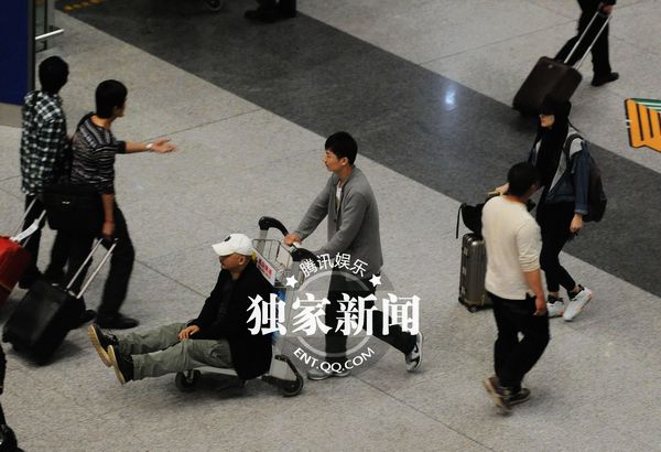 張雨綺成“跟包” 王全安機場“坐車”賣萌(組圖)